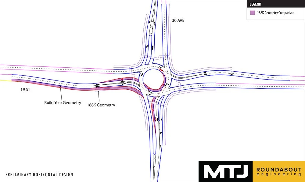 MTJ Roundabout Engineering, as a subconsultant, provided operational analysis and design services for these two roundabouts on 19 Street at 30 Ave. and 40 Ave. in the City of Red Deer.