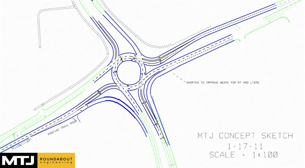 The Road Commission for Oakland County needed a solution to improve safety, access and traffic flow at this busy intersection, and MTJ was retained to provide roundabout peer review services.