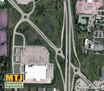 MTJ Roundabout Engineering’s Mark Johnson, PE, was the designer/reviewer responsible for capacity analysis and final horizontal geometrics for this roundabout serving a major interstate.