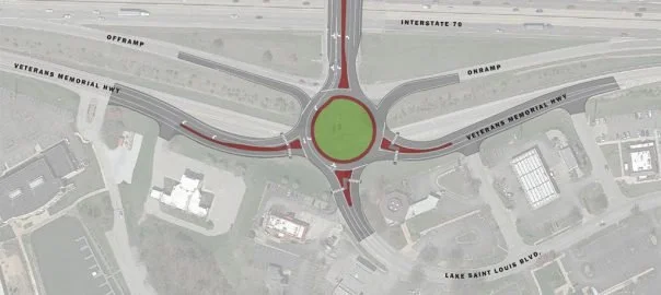 The City of Lake St. Louis conducted a concept study to improve the function of the two closely spaced intersections at Veterans Memorial Parkway and the eastbound ramps of I-70 on Lake St. Louis Blvd. This analysis included evaluating roundabout options for addressing the closely spaced intersections that were experiencing congestion and safety issues.